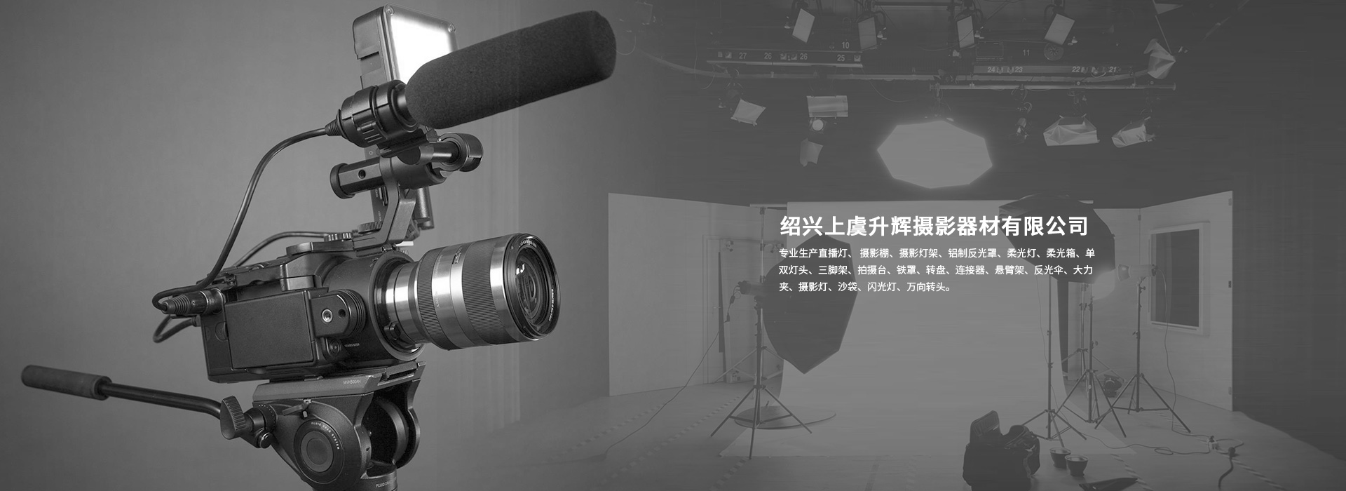 紹興上虞升輝攝影器材有限公司專(zhuān)業(yè)生產(chǎn)直播燈、 攝影棚、攝影燈架、鋁制反光罩、柔光燈、柔光箱、單雙燈頭、三腳架、拍攝臺(tái)、鐵罩、轉(zhuǎn)盤(pán)、連接器、懸臂架、反光傘、大力夾、攝影燈、沙袋、閃光燈、萬(wàn)向轉(zhuǎn)頭。